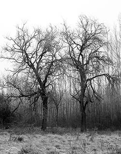 A nagyformátumú géphez való síkfilm elképesztően drága dolog, így hát egyelőre még ki sem próbáltam. Viszont a fotópapír nem annyira drága, és – micsoda varázslat! – a síkfilm helyére be lehet szuszakolni (bár vastagabb, és ez okoz némi problémát) és akkor furcsa, oldalfordított negatív képeket lehet előhívni, amiről mindenkinek az a véleménye, hogy „jé… és akkor ez most mi?” De ha beszkenneli az ember, és képszerkesztő programmal átfordítja, hogy oldalhelyes és pozitív legyen, akkor egész izgalmas képet ad, ami lágyabb, kevésbé részletgazdag, mint a filmre készült felvétel, tónusaiban is gyengébb, de egészen sajátos hangulata van. Meg jókora helyigénye. A kidolgozáshoz is.